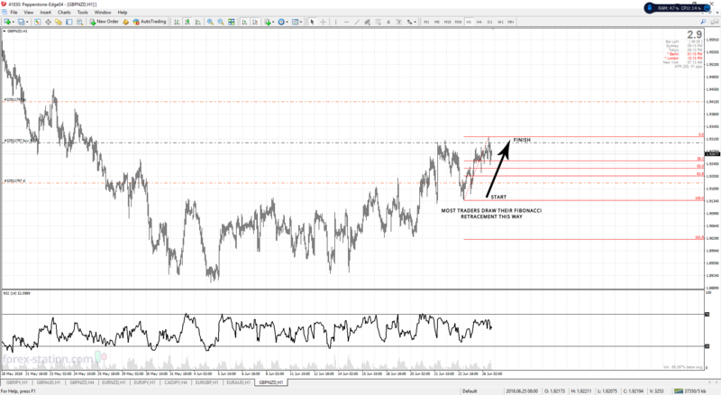 For those of you who draw your Fibonacci the traditional way (swing low to swing high for an uptrend and swing high to swing low on a downtrend), draw your Fibonacci in reverse instead (swing low to swing high on a downtrend and swing high to swing low on an uptrend)!